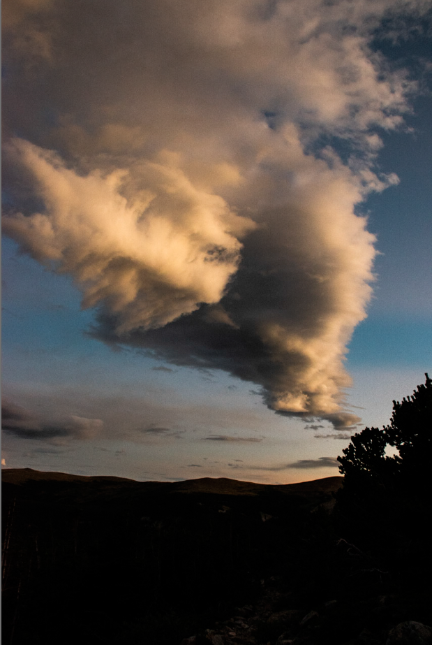 This set of stratocumulus, cumulus , and altocumulus clouds was photographed at sunset during a backpacking trip in Indian Peaks wilderness with a Nikon D5500. The atmosphere was highly unstable.