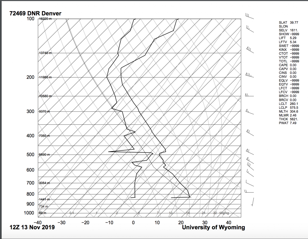 I took this picture at the University of Colorado in Boulder Colorado at 11:10am. As you can see on the Skew-T with a CAPE of 0 we can conclude that the atmosphere was experiencing stable conditions.