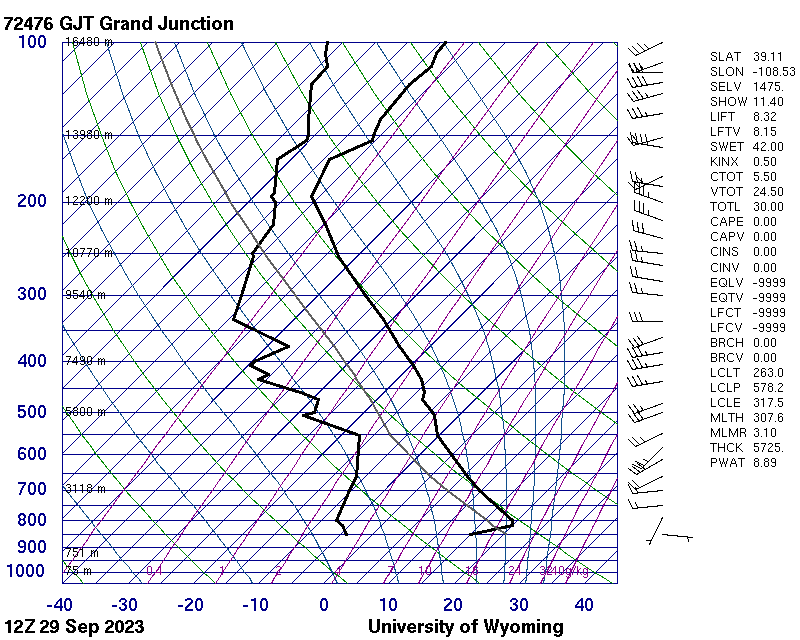 - Winds from the west-southwest at 35 knots (above the fluctus)