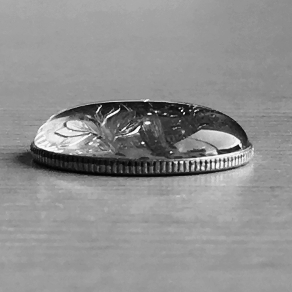 Nice work with an iPhone camera. I like how the water on the coin pulls up the image of the coin and shows the magnification. Really cool how the water is so much taller than the coin itself.