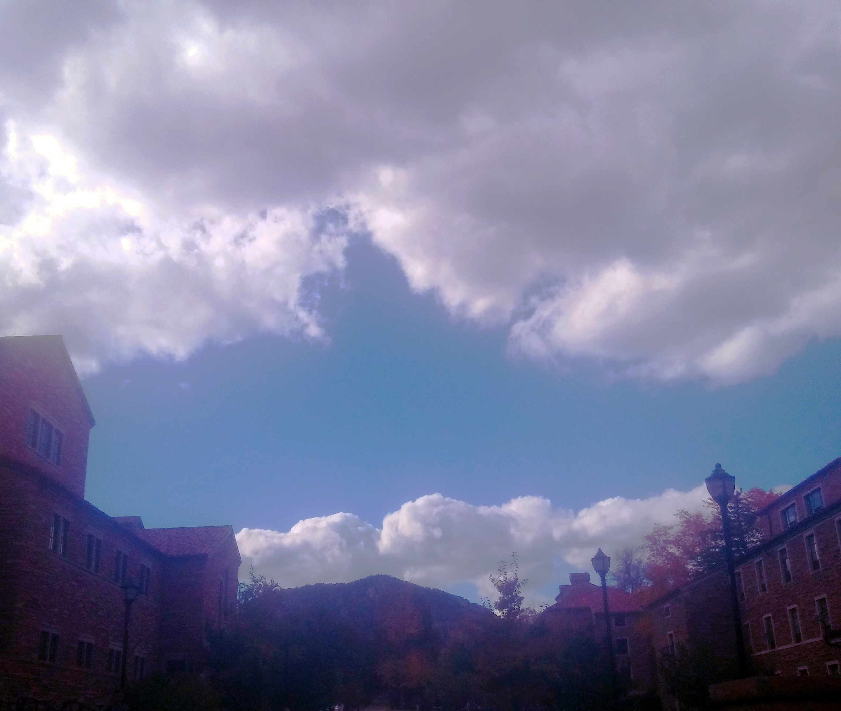 Image quality looks a little cloudy. But I love the frame of CU campus and the layers of clouds.
