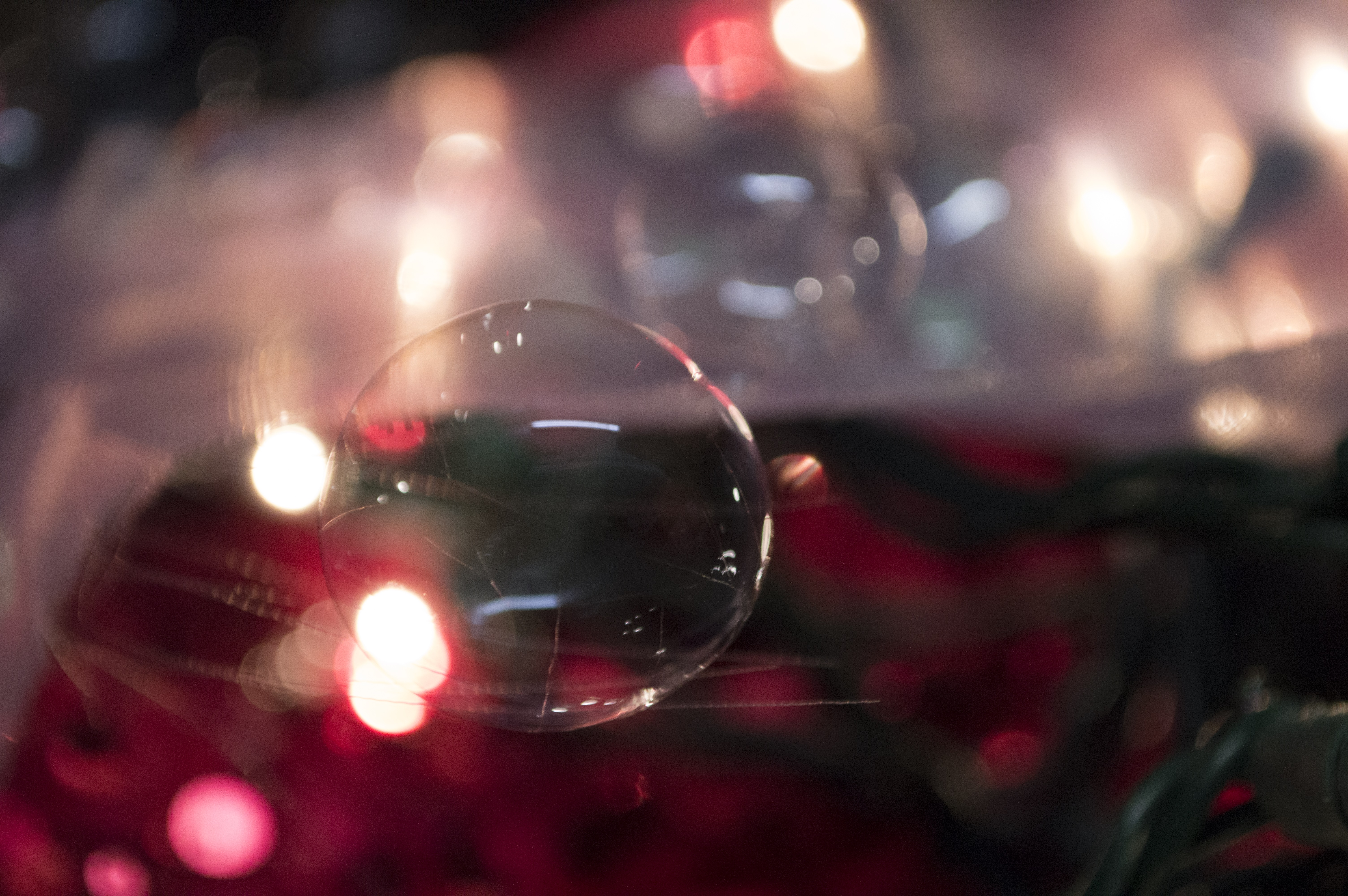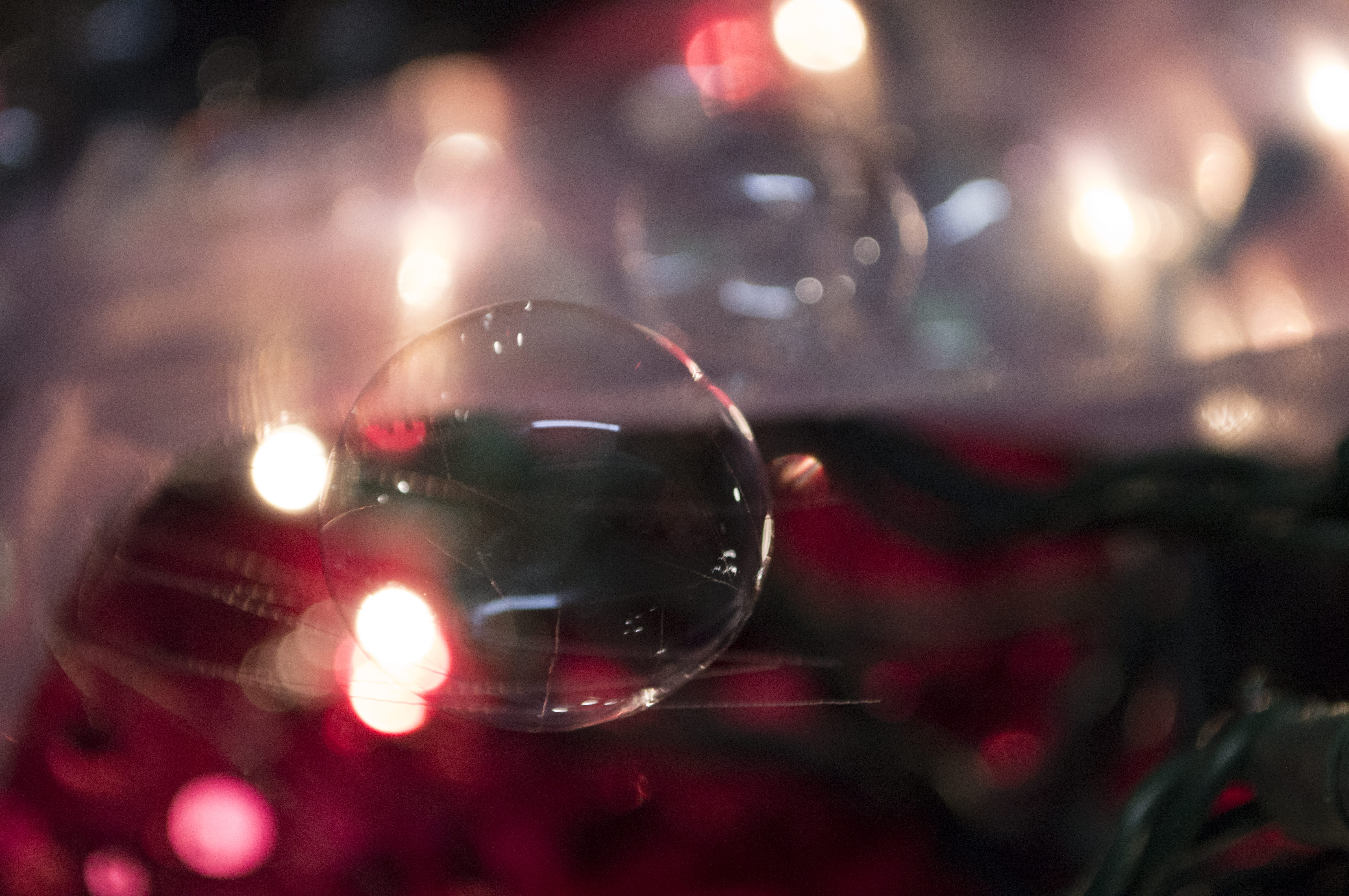 Cool bubble, but there isn’t too much distinction from the foreground to the background. It would be nice of the bubble was more distinct, perhaps lit in a distinct way from the background. I like th holiday feel to the image.