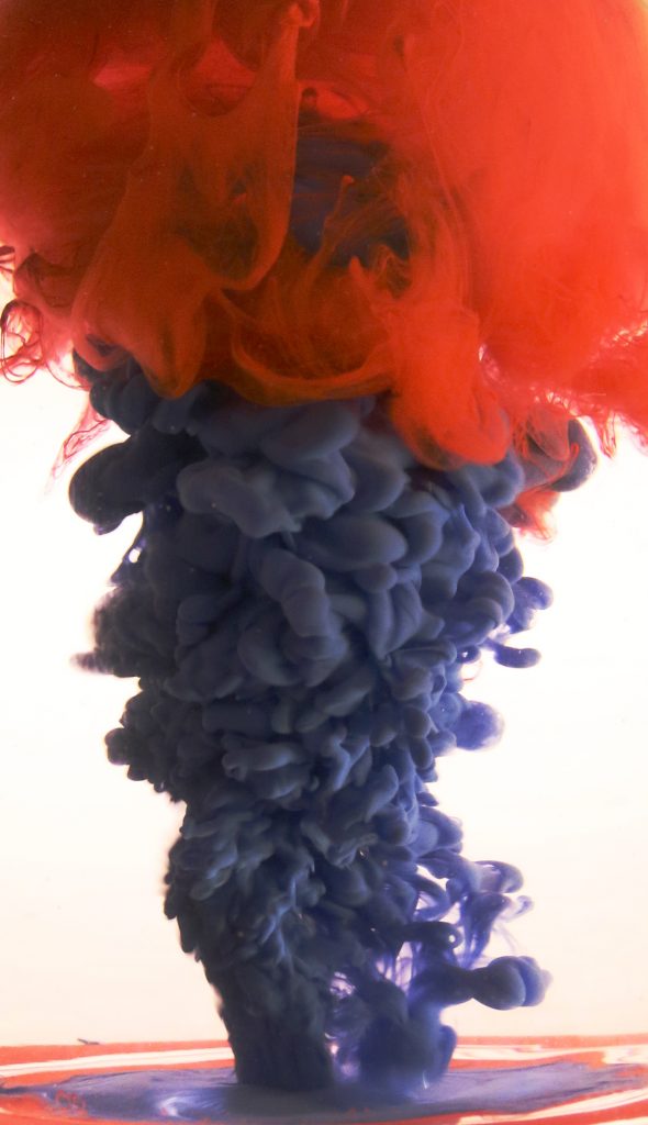 The red and blue paint contrasts really well with the white background. The flow can be clearly seen. Aesthetically pleasing.