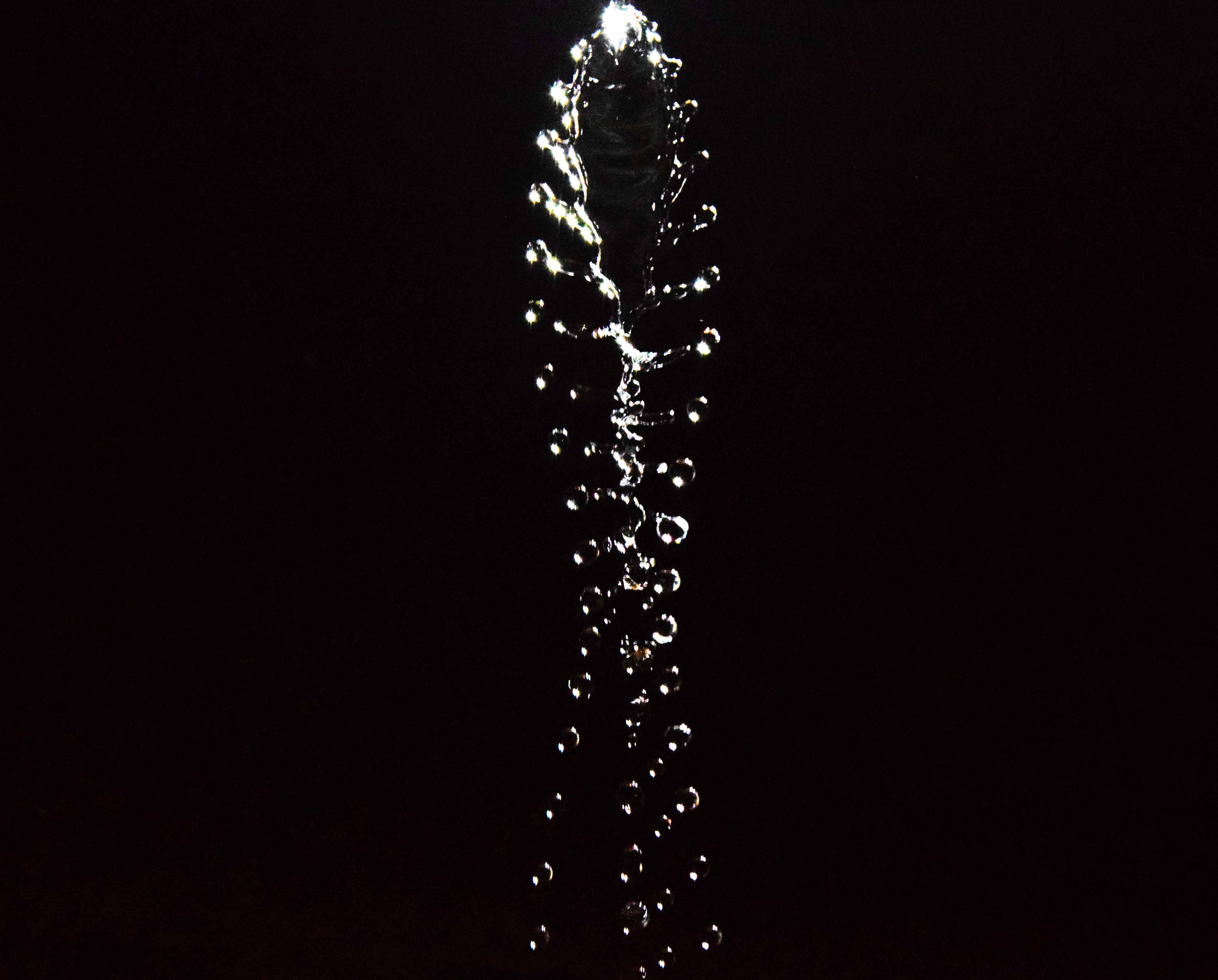 I like the contrast and light droplets against the dark background. I see a little brown about halfway down, so maybe bringing it down to full B&W might be nice.