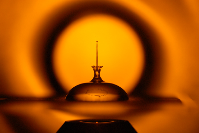 This photo depicts the fluid phenomenon of cavitation. It happens when voids or bubbles are created in a liquid. The bubbles then collapse on itself and create shock waves and jets of water. Those jets of water can be seen coming out of the middle of the bubble shown. This is an interesting occurrence in fluids in which happen quite frequently in many applications. This picture shows the true beauty of events like these in which aren’t normally seen.