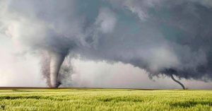 To capture a picture of a tornado is extremely difficult, but to capture two at once is amazing. “Storm Chasers” spend the entire tornado season searching for storms and tracking tornado development. This picture was taken in Dodge City, KS. The mixing between warm air and cold air with the perfect combination of updrafts and downdrafts causes these devastating tornadoes to occur.