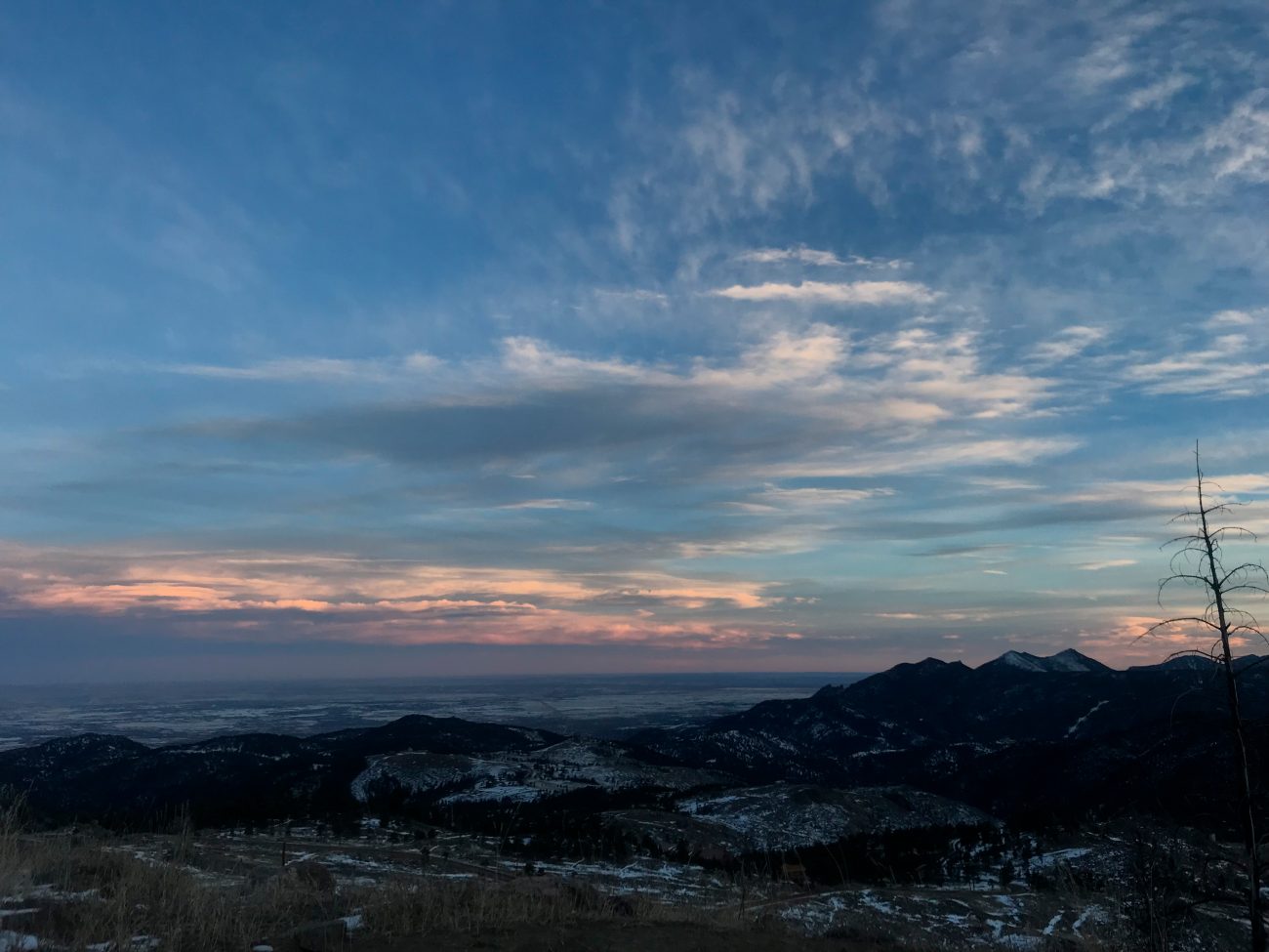 Great photo! I really like how there is an apparent depth to the photo as shown in the horizon. Also, the color mapping in the photo is well composed with plenty of light in the foreground to see the mountains while not distracting from the clouds.