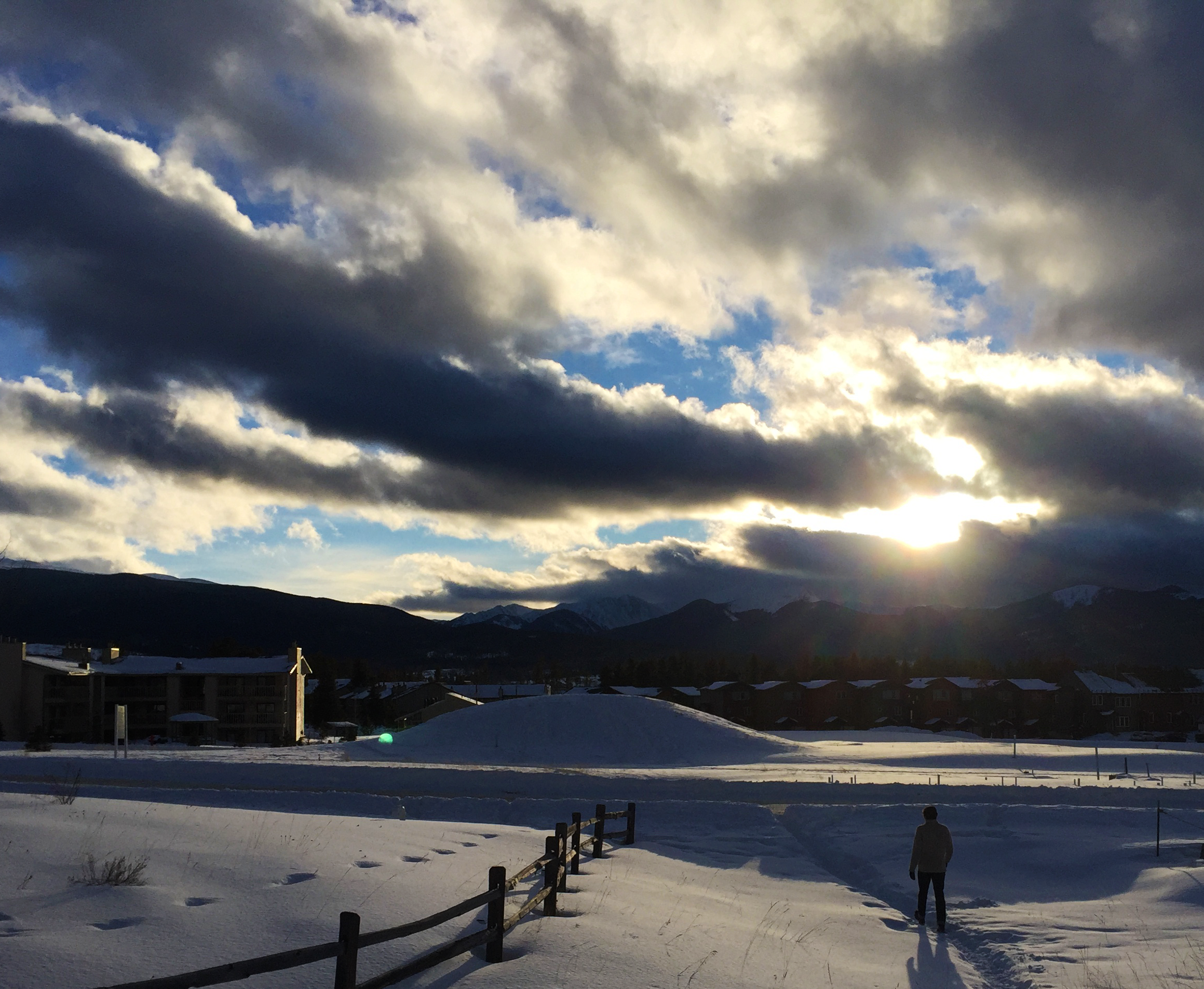 Nice job and getting just enough of the sun coming through. I also enjoy the guy standing there and the foreground with snow. The clouds are still a good focus. Cool clouds.