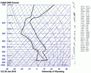 Alto-cumulus Standing Lenticularis cloud formation in a stable atmosphere, seen over the Flatirons on January 29 at 3:57pm.