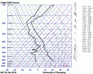 An altocumulus lenticularis cloud taken on January 29th at approximately 5:30 PM, which exists in a stable atmosphere. The Skew-T data can be found in the following image: