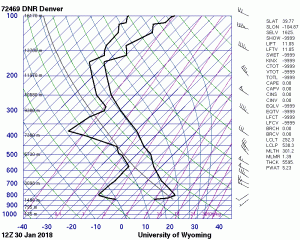 According to the above skew-t diagram, the atmosphere was somewhat stable on January 30th. I know this by the cape of .06. I think this was important in the formation of the heart shape stratocumulus cloud. I think this cloud is a mountain wave cloud due to its smooth texture and v shape, I suspect caused by air rising after passing between the mountains. The clouds in the background are altocumulus undulatus or cirrocumulus lenticularis due to its fluffy, somewhat divided shape. I’m not sure which and I am also not sure if the clouds were the mountain wave or just being shaped by it. They were a little over exposed but I am happy with the resulting backdrop for the heart shaped cloud.