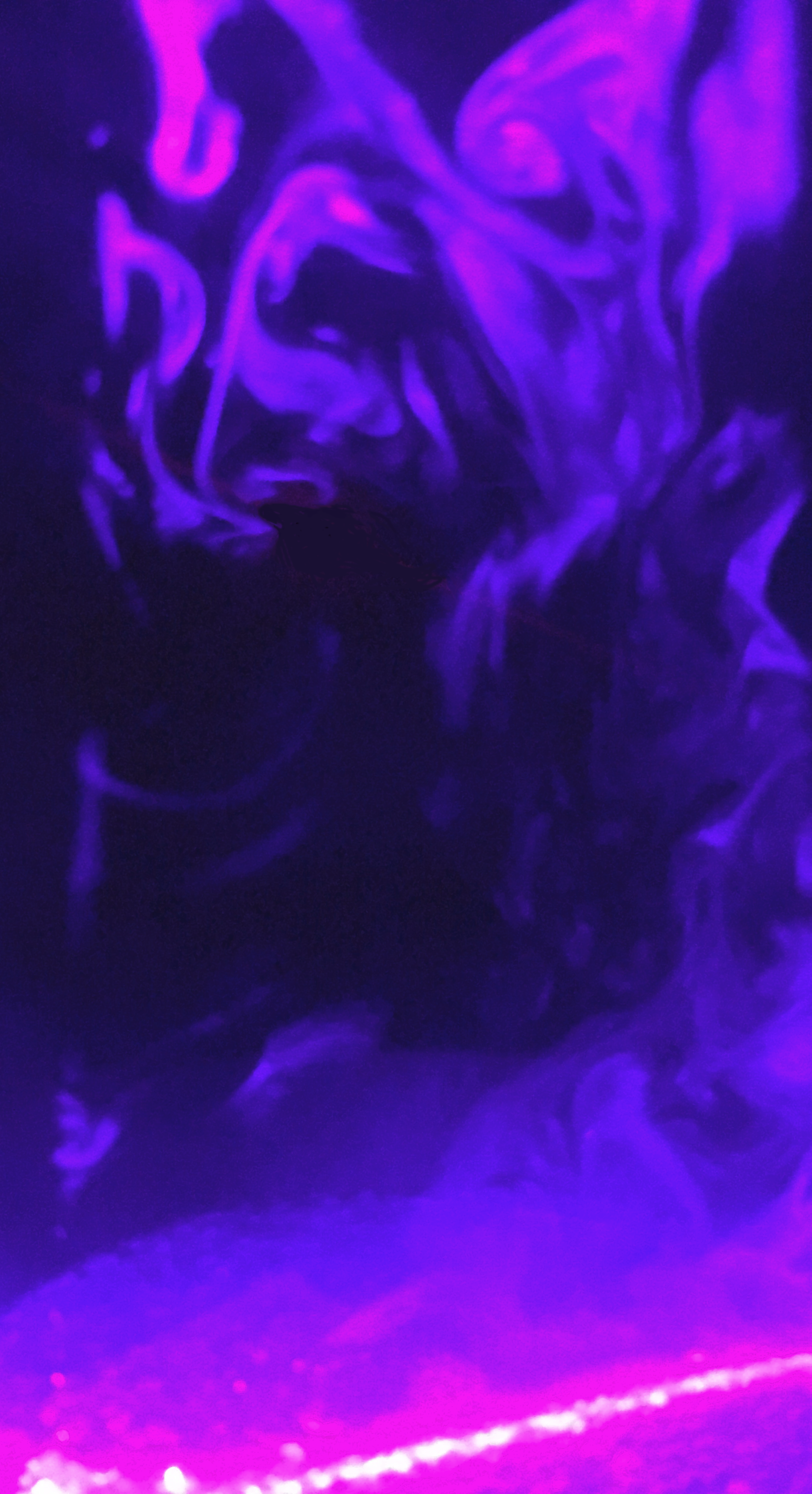 I like the colors in this image a lot. It has a great aesthetic to it with the swirls running up the side. It clearly shows the details in the vapor and the light underneath adds a cool effect. The photo looks to be a little out of focus but its by no means distracting.