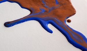 The focus of the image combined with the contrast does a great job at showing the mixing of the two colors. The texture of the background does a great job at moving focus around the image. Were brown and blue intentionally chosen?