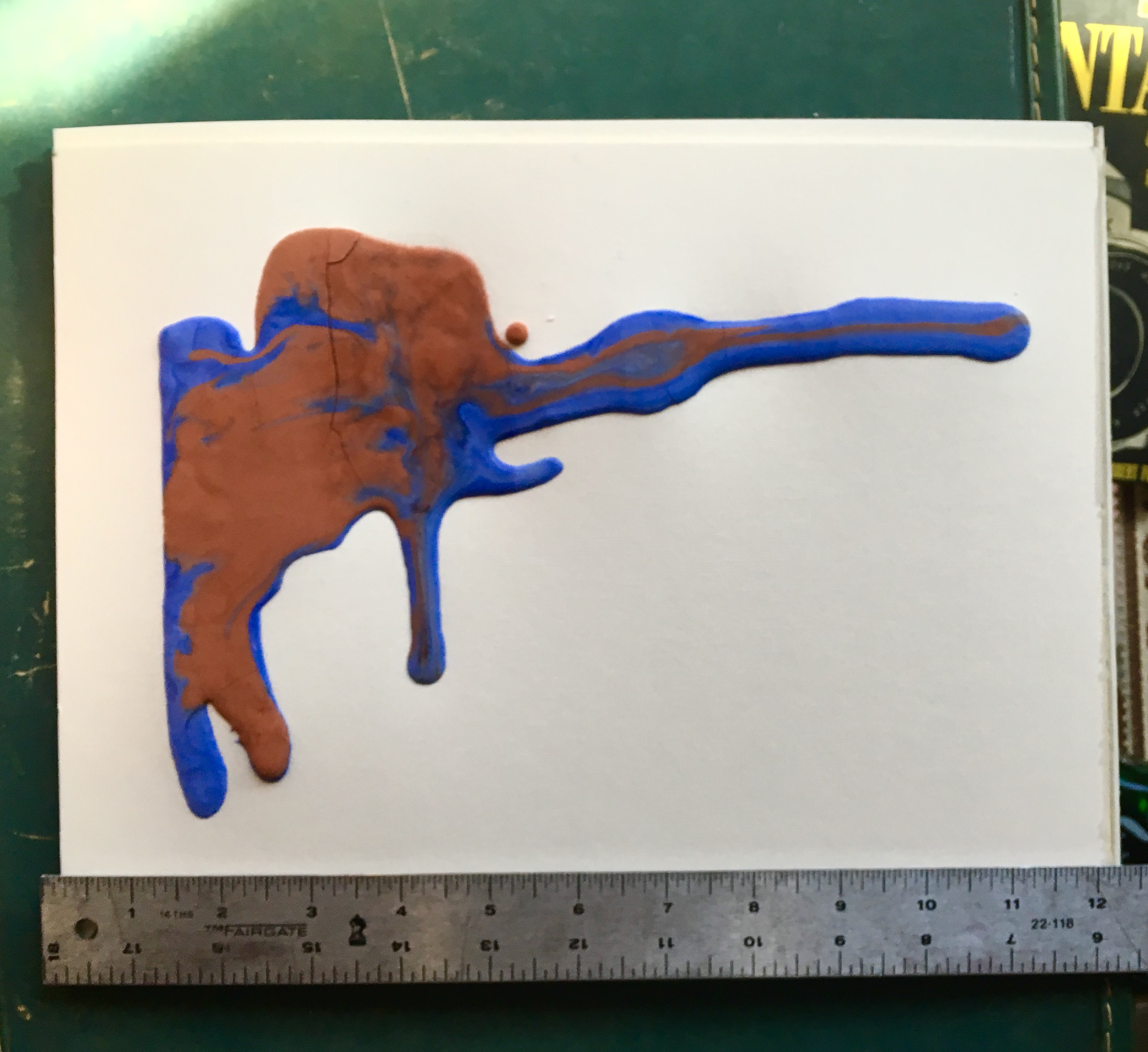 Flow: you perfectly caught the oobleck in its flow down the page under gravity with the intermixed colors