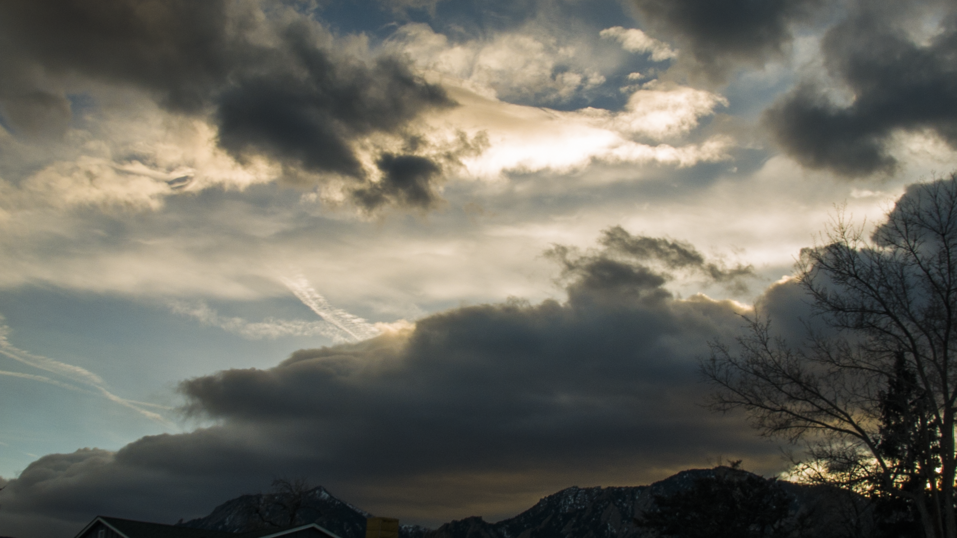 There is a lot of action going on with these clouds. I like how you can see those dark clouds rolling over the mountains.