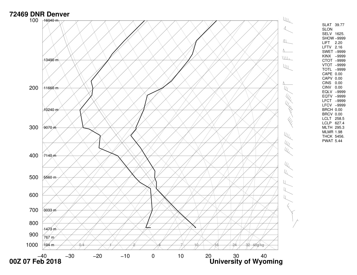 Skew-T chart and atmospheric information: