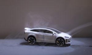 This is a really interesting image. Although its subtle you can see the flow of the humid air over the model car. The image is clear and in focus.