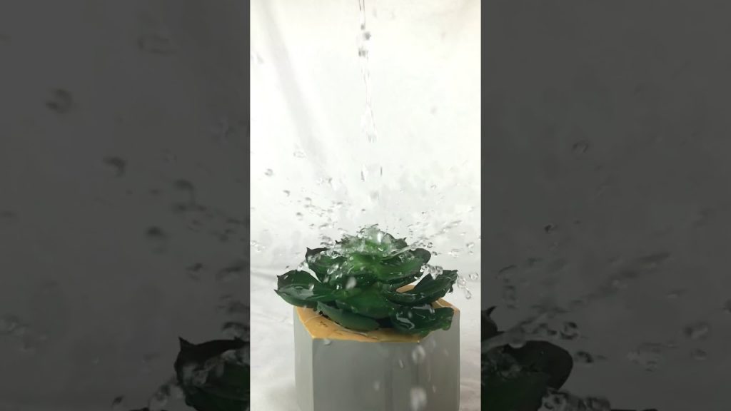 Jeez what kinda iphone do you have? Good choice not messing with the audio as the droplet sounds adds great effect to the overall video. Its framed well as it captures both the falling stream as well as the impact and splattering of the succulent contact.