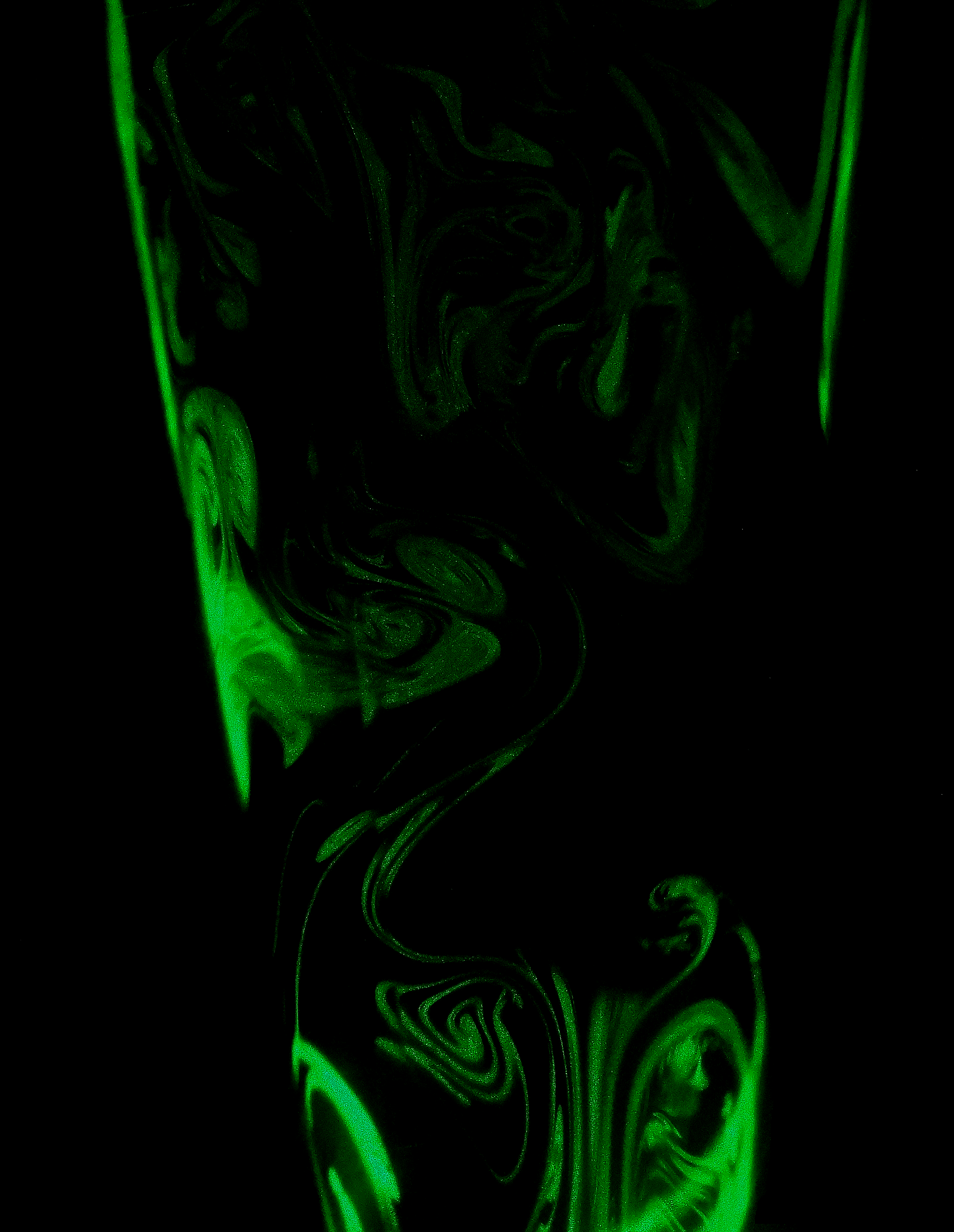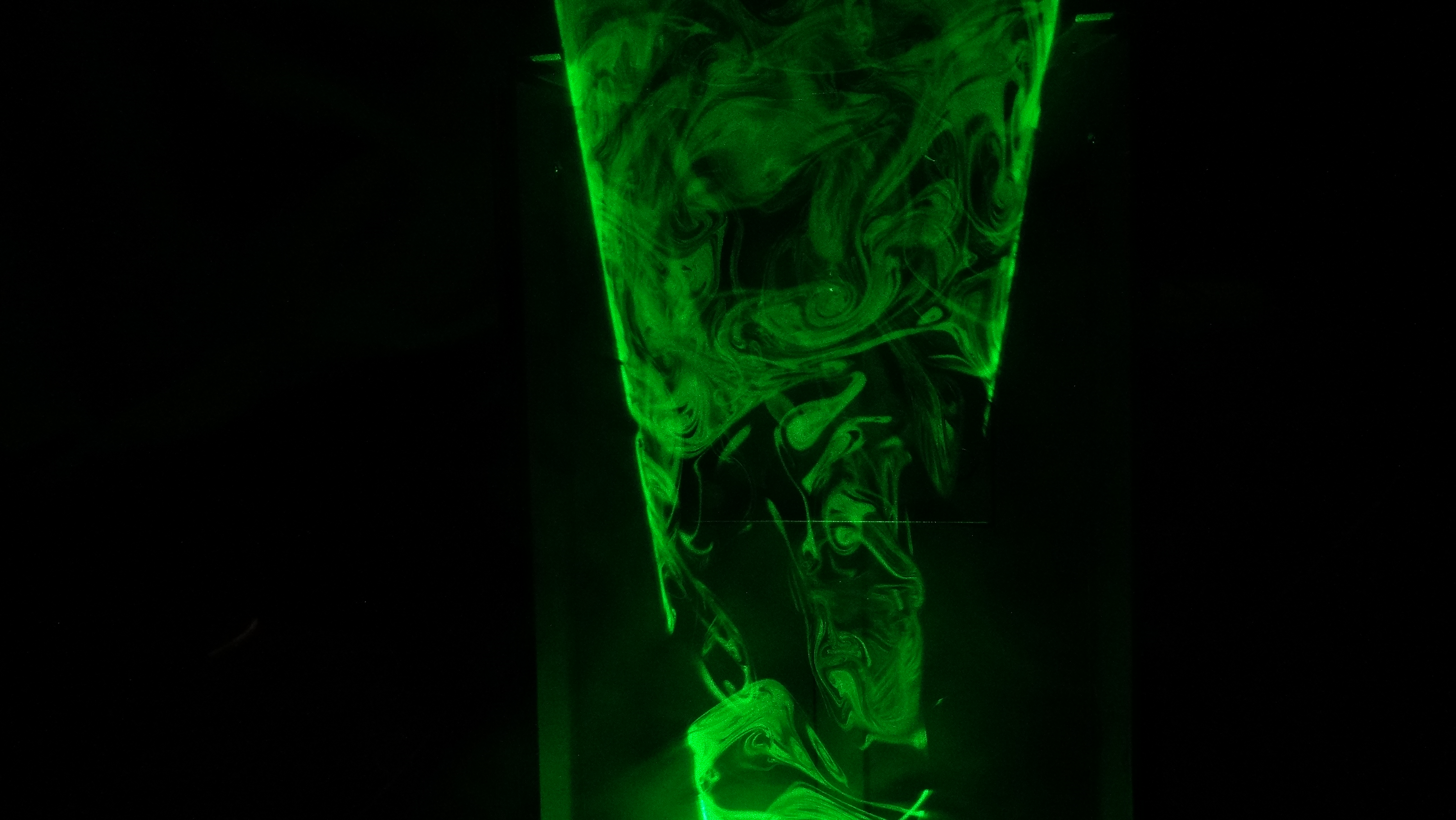 Beautiful image. I like the view of the turbulent flow spirals. The green laser provides a nice aesthetic.