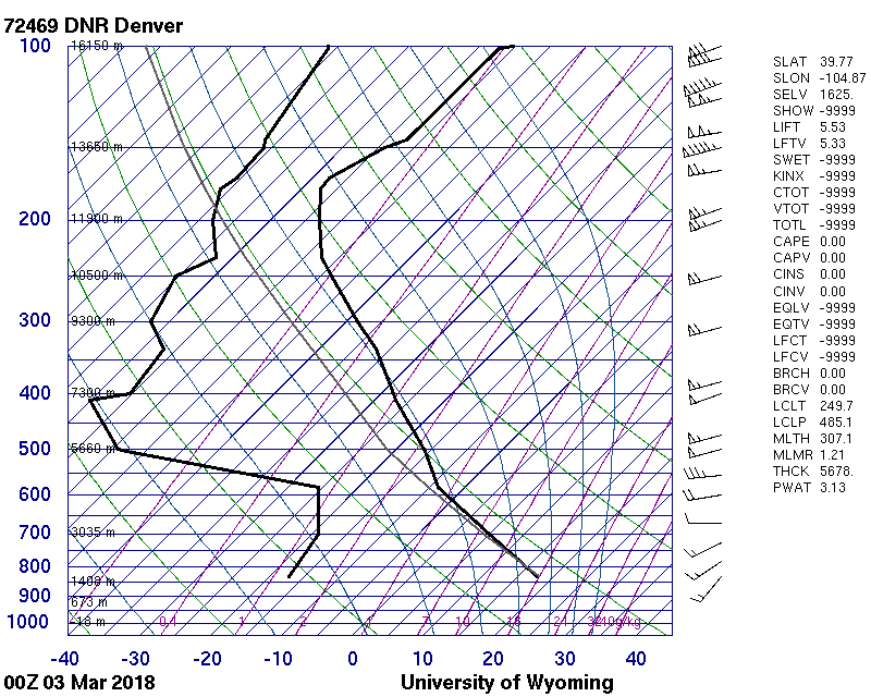 A low-elevation cloud captured in Boulder around 1 pm, March 3. The cloud is puffy on the left and blends into flat streaks on the right. The colors were inverted using Preview’s color adjustment tool. I calculated the atmosphere to be stable based on this skew-T diagram.