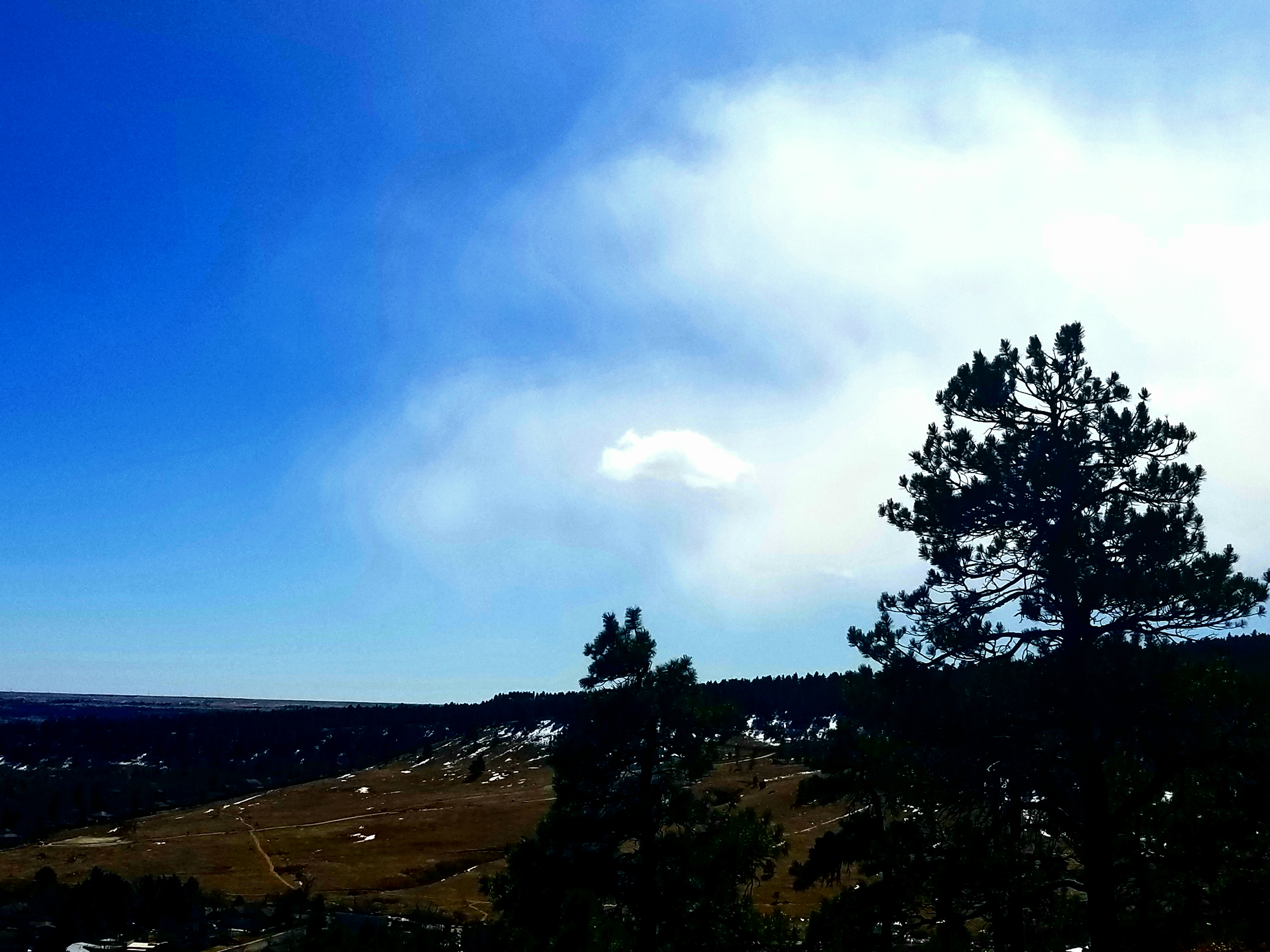 Small Cumulus cloud shaded by stratus cloud on a very windy day at Flagstaff Mountain in Boulder CO March 5th 2018.