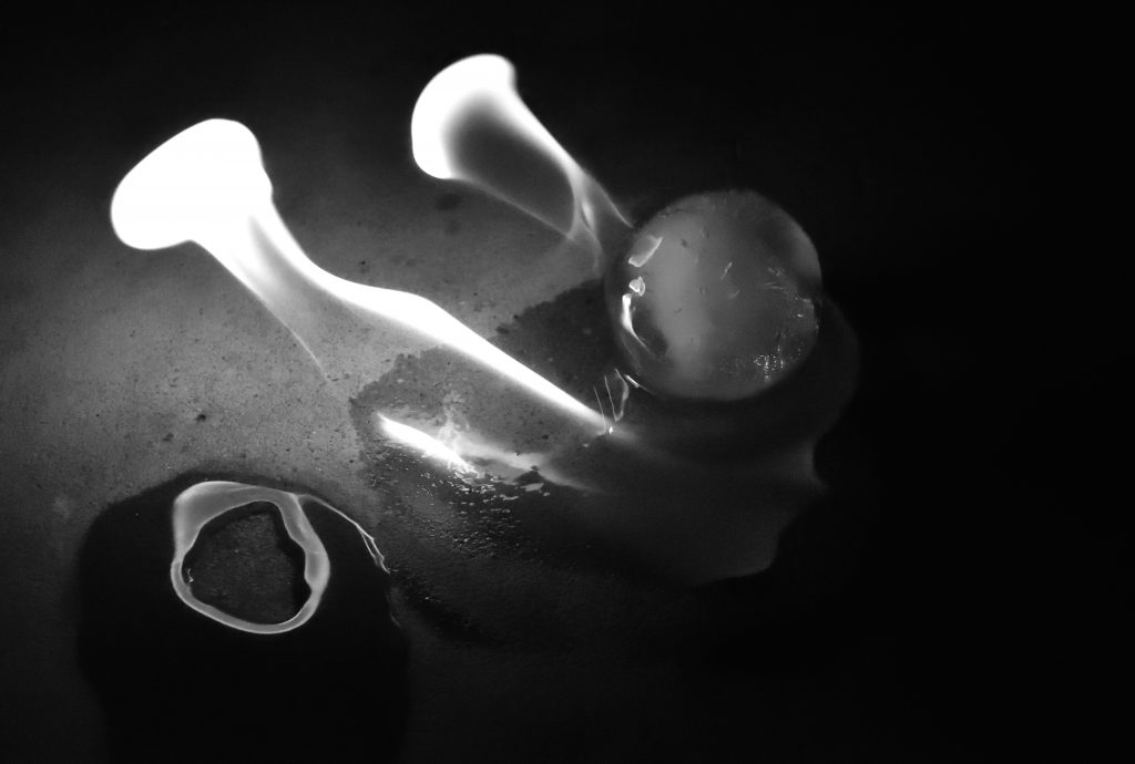 Ice sphere set aflame with lighter fluid. The report can be found here.