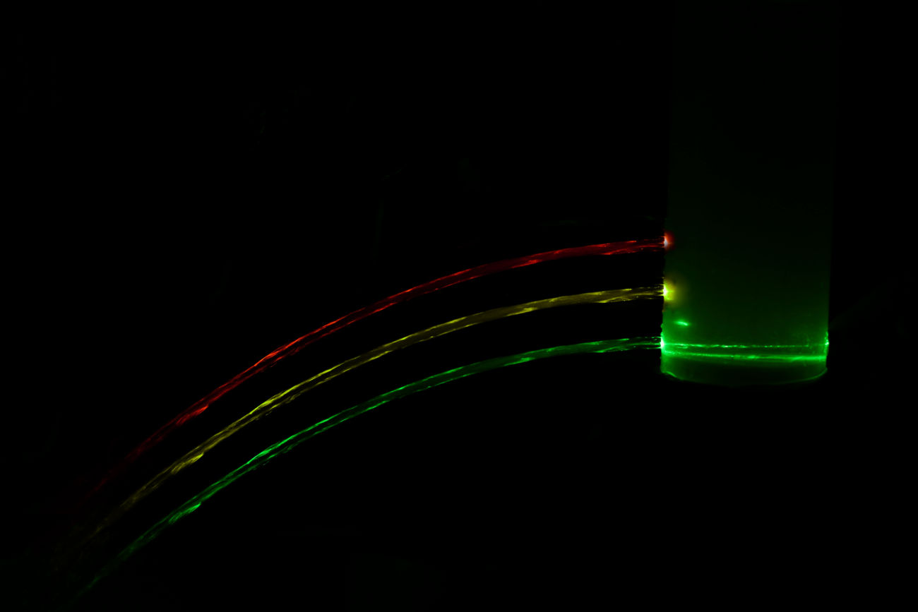 Your image is balanced, focused, and lead the eye towards the direction of the laminar flow. The colors of the laser lights provide a much needed contrast between each of the streams and serve to illuminate the direction where each of the streams go. I especially enjoy the visual balance in this image: you cutoff the top and bottom parts of the frame with the laminar flows and your negative space has weight as a result.
