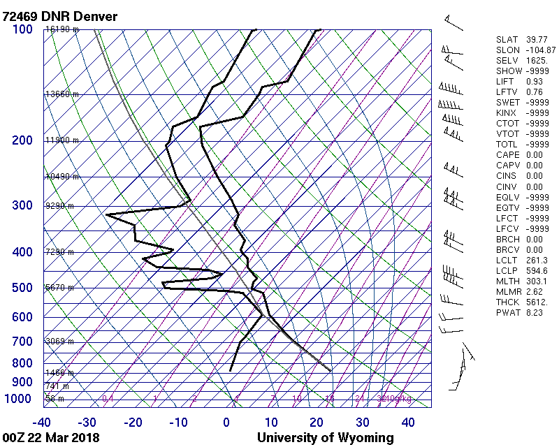 SKEW-T Diagram for March 22, 2018: