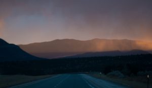 Awesome photo. I really like the way the light crosses through the mountains and your choice to frame the empty road in the image.