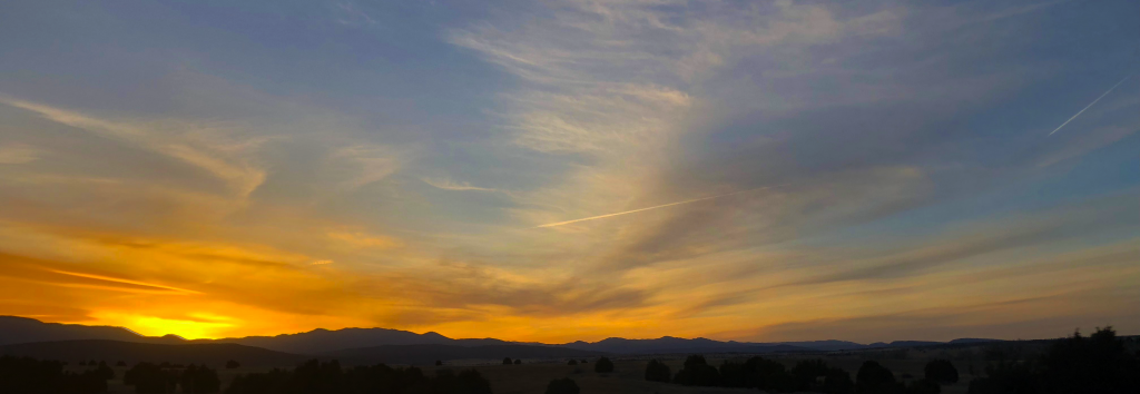 All the colors in the sky that you captured are lovely, almost nostalgic. The wispiness of the clouds are punctuated by contrails that seem to draw the viewer’s attention in various ways throughout the image.