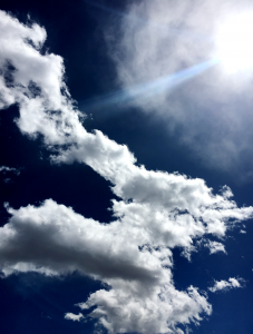 Sunlight shining through stratocumulus clouds exposed to moderate winds on April 8th, 2018 at 1:39 pm.