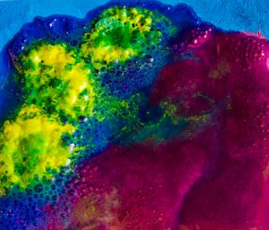 I really like the idea of the “living painting”. The colors are beautiful and the composition is wonderful. The idea is really cool of the alcohol paint with baking soda and then adding vinegar.