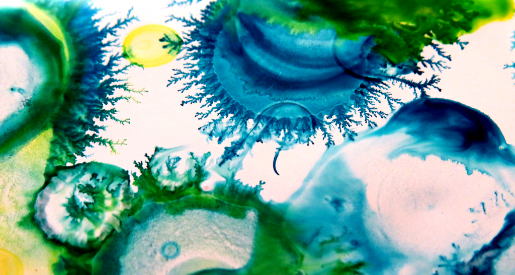 Nice composition and interesting flow. It might be interesting to change the orientation of the fluids for future experiments.