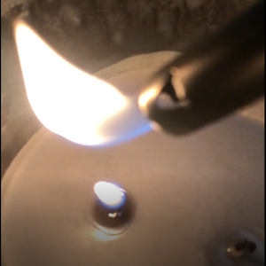 The video used for this assignment depicts the phenomena of reigniting a candle via its smoke when blown out. This can happen when a lit candle in blown out, then a lighter is quickly brought to the smoke coming from the wick. The reason this can happen is because when the candle is lit, the flame/wick is burning up wax to produce the flame. When it is blown out, unburned wax is carried into the air with the smoke. This wax can be ignited and travel down the stream of smoke to reignite the wick itself. When making this video, just a candle and a long lighter was needed.