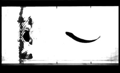 The fish looks like it is alive and swimming, but is in fact moving due to passive propulsion. The vortices in the water move the fish’s body to cause the tail and head to point different directions. If positioned correctly, as in this GIF, there is a resonance between the vortices and the fish that generates thrust. This means the fish can hold its position or even move up stream without expending any energy.