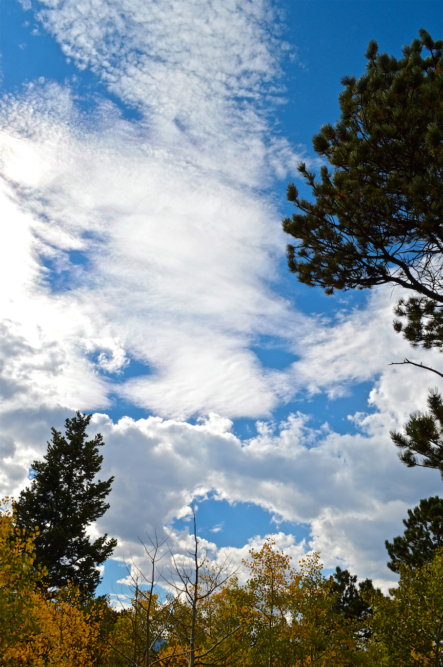 I really like the colors in this picture. The trees create a nice framing and the yellow of the aspens contrasts so nicely with the blue of the sky. I also really like the many different types of clouds shown in this one picture.