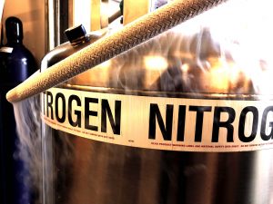 Cool phenomena from the nitrogen and its condensation off the piping. You can see the laminar flow change directions from the wind that comes in from the left. Maybe you could get closer or eliminate the background setting.