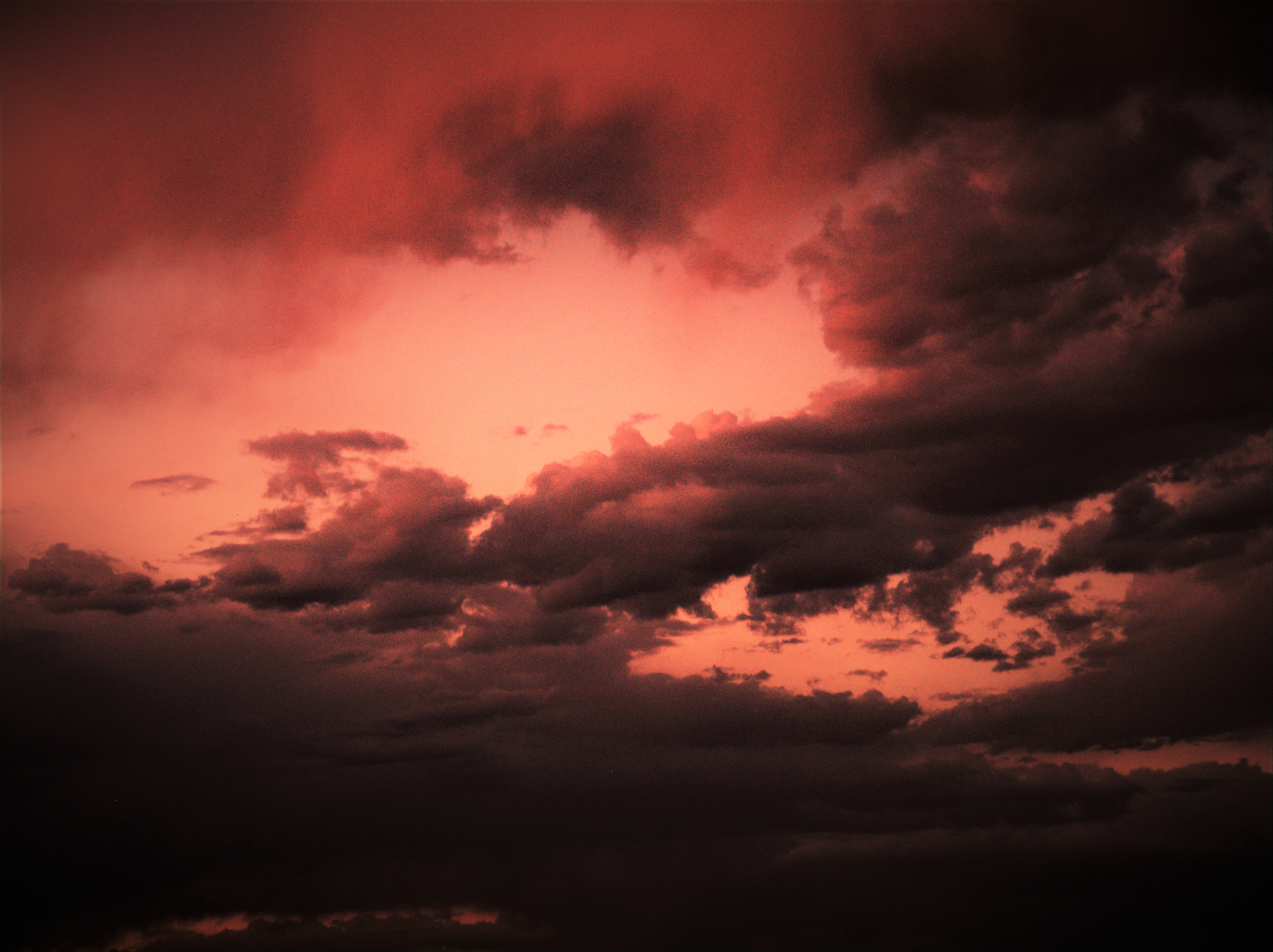 Wow I really like that you decided to go with a red tint to this image. I feel that the color brings out some nice outlines of the clouds and provides good contrast against one another. Could benefit from some cropping on the bottom half possibly.