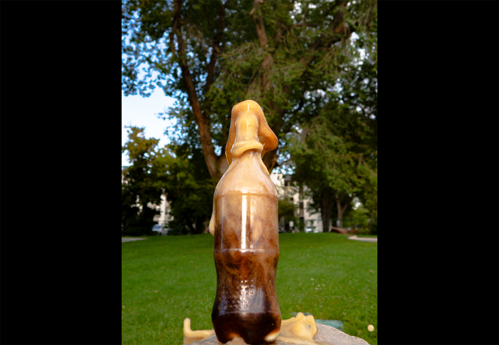Love the classic coke and mentos experiment and it’s really cool to see the image of it. The flow color spewing from the top is pretty interesting. Maybe next time place a piece a paper behind the bottle to eliminate the tree in the background.