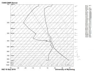 Taken on September 17th at Boulder. The cloud is cumulus. Since the CAPE is 89.09, it’s in unstable atmosphere. The Skew-T Map at that day is shown below.