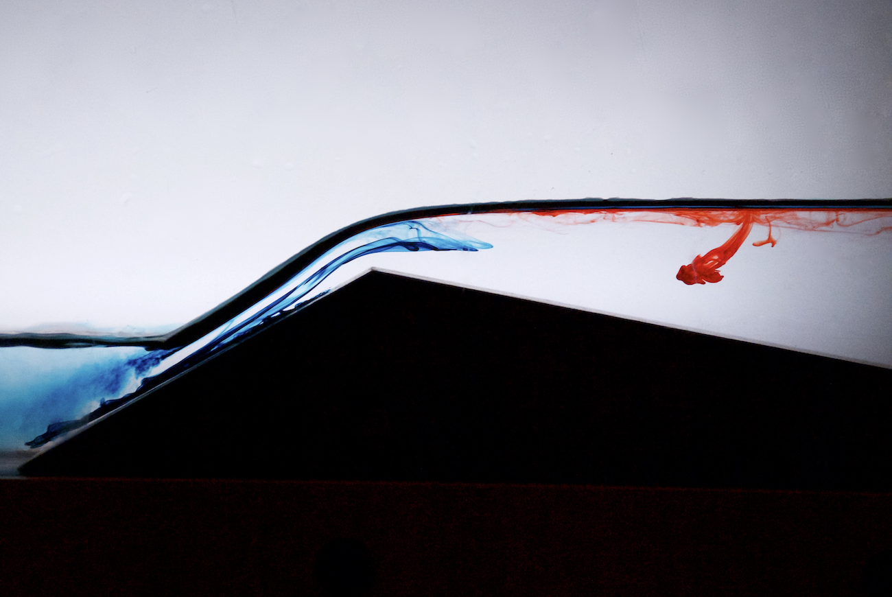 This is a striking image! Great job with the composition of the image and the use of color to demonstrate a powerful flow phenomenon. The red drop is interesting to look at but doesn’t seem to add a lot to the theme of laminar vs turbulent flow.