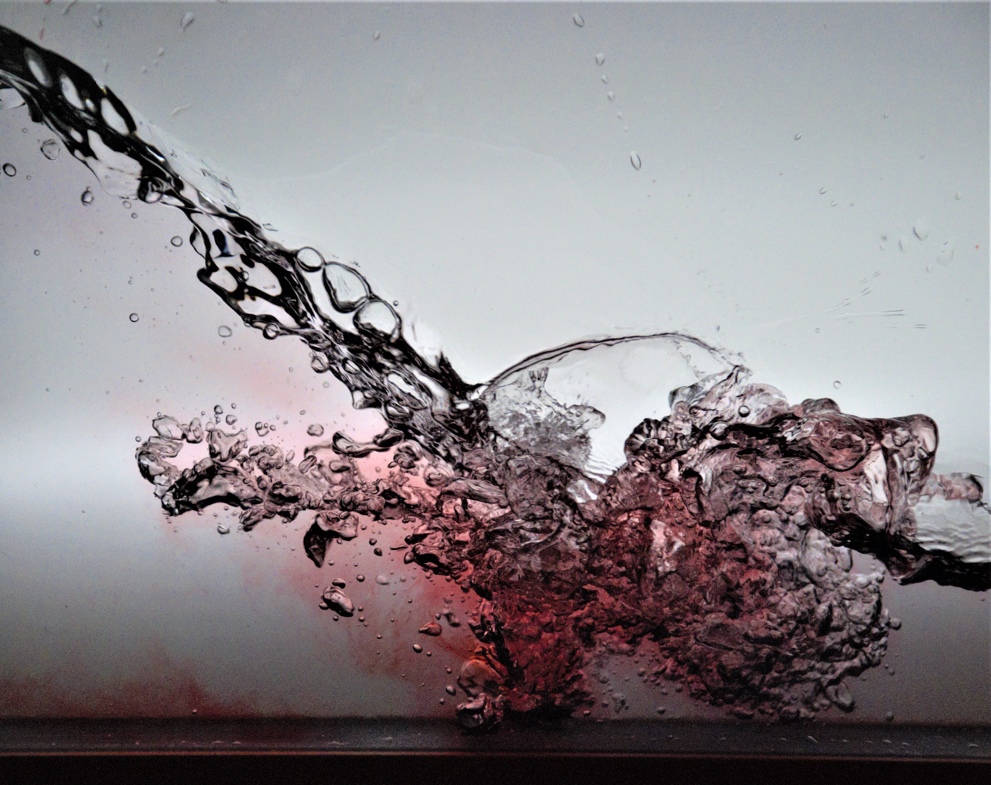 I like the red food coloring that you chose to use as well as the use of the flume machine. my only suggestion would be to try and crop the little bottom of the image out in order to create a solely white back drop.