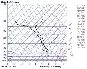 The clouds show here are Altostratus Undulatus. This picture was taken the night before a large storm reached the Denver area so the atmosphere was very wet at the time. It was also a stable atmosphere which created some very unique clouds for the region. The atmospheric data can be seen in more detail in the Skew-T chart below: