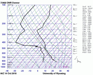 This photo was taken near the Wings Over the Rockies Air & Space Museum around 6pm. According to the Skew-T, the CAPE indicated 0.00 which means they are Stable Clouds. From my understanding, it seems as though these clouds are cumulus.