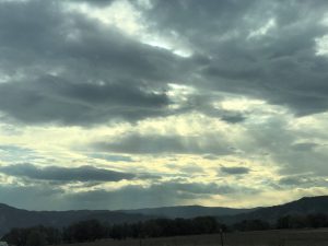 I like that you were able to capture some light rays coming through the clouds. This light gives a nice contrast within the image. I think this image could have benefited from some black and white contrast.