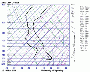The pictured imaged is a an artistic approach to the cloud assignment. The picture was taken on a sunny day in Boulder, CO in a stable environment and the cloud pictured is Cirrus. The Skew-T is below.