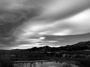 I like that you decided to go with a gray-scale image of these clouds. I think it could have been very awesome to try to take a reflected picture of the clouds within the lake in the foreground here. Maybe next time!