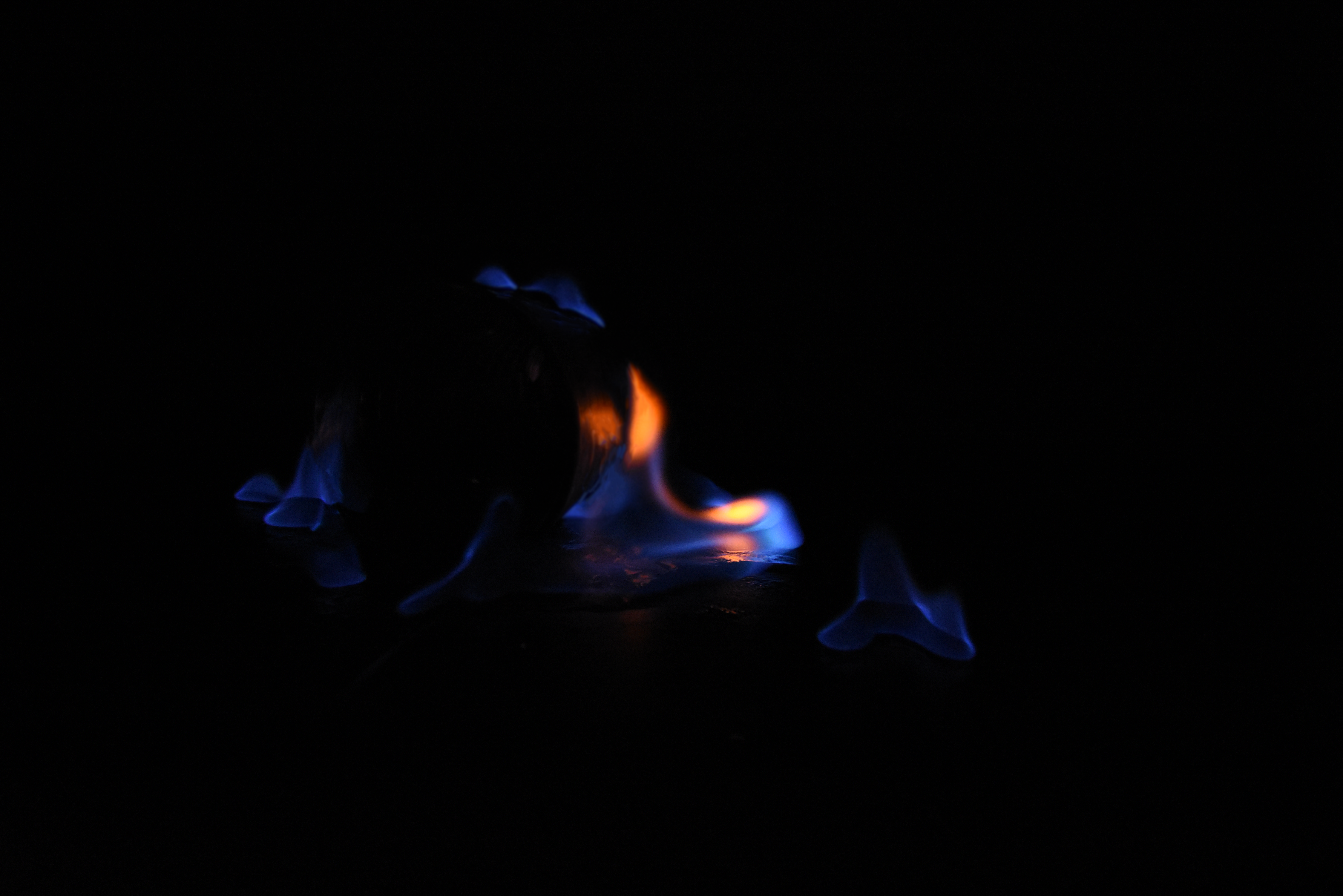 The bright blue color is very nice and the very dark background highlights it well. I think a larger flame would help to highlight the wave effect if you tried it again but it is a good start.