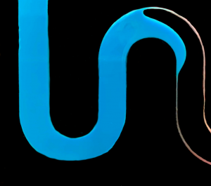A viscous fluid flowing through a channel, demonstrating surface tension and Bernoulli’s principle. Image created with help from Brandon Gushlaw, Peilin Yang, and Winston Douglass.