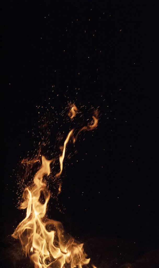 I like the sparks coming up from the fire. I think the image would benefit from cropping the image more to see the detail in the flames.
